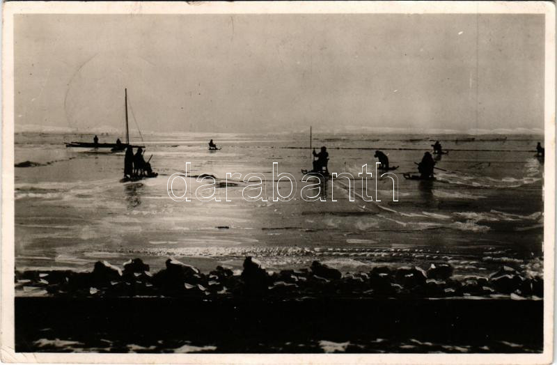 Balatonkenese, téli sport, fakutyázás + "M.KIR.MOZGÓPOSTA 30 A" vasúti mozgóposta bélyegző. photo