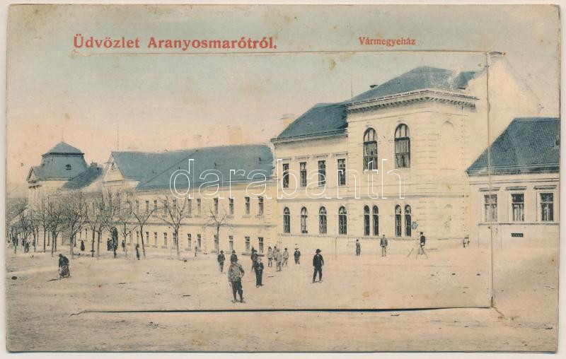 1909 Aranyosmarót, Zlaté Moravce; Vármegyeháza. Steiner Samu kiadása, leporellólap 10 képpel / county hall. leporellocard with 10 pictures (fl)