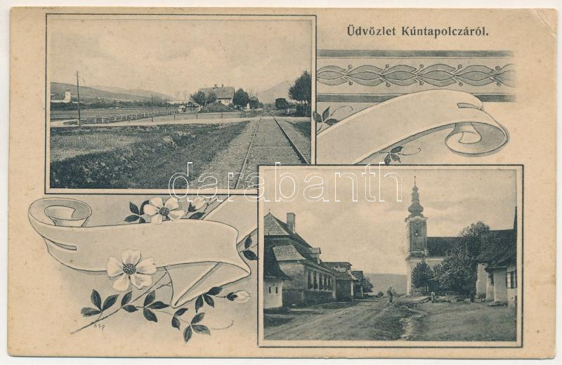1911 Kuntapolca, Kunova Teplica; látkép, vasútállomás, templom / view, railway station, church. Art Nouveau (EM)