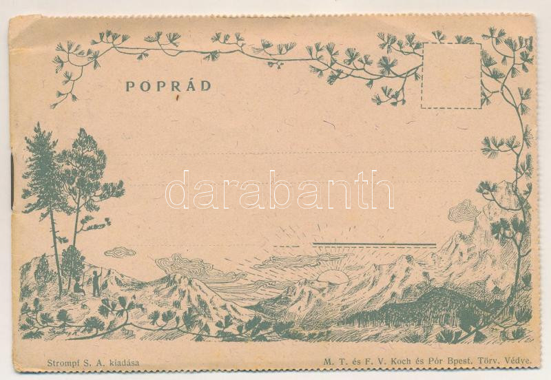 Poprád (Tátra, Magas-Tátra, Vysoké Tatry); Képeslapfüzet 8 képpel, közte sörgyár, papír borítóval. Strompf S. A. kiadása, M.T. és F. V. Koch és Pór (Budapest) / Art Nouveau postcard booklet with 8 images (non PC) and paper cover, with brewery, beer factory