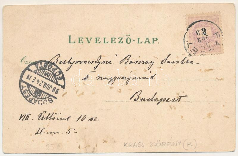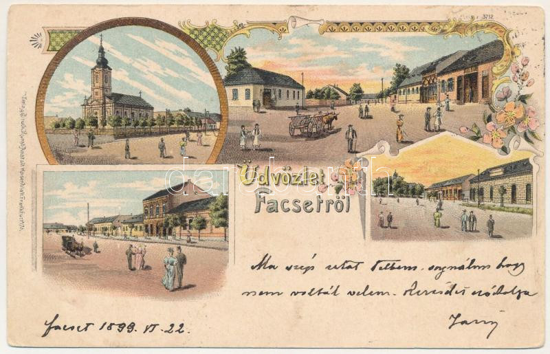 1899 Facset, Facsád, Faget; templom, Fő tér és utca, Korona hotel / church, main square and street, hotel. Kunstanstalt Rosenblatt Art Nouveau, floral, litho (EK)