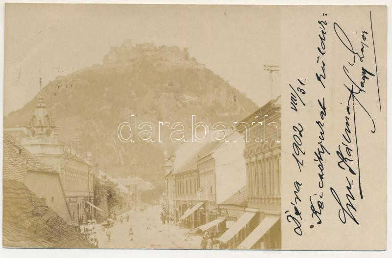 1902 Déva, utcakép, vár, Kroll üzlete / street view, castle, shops. photo