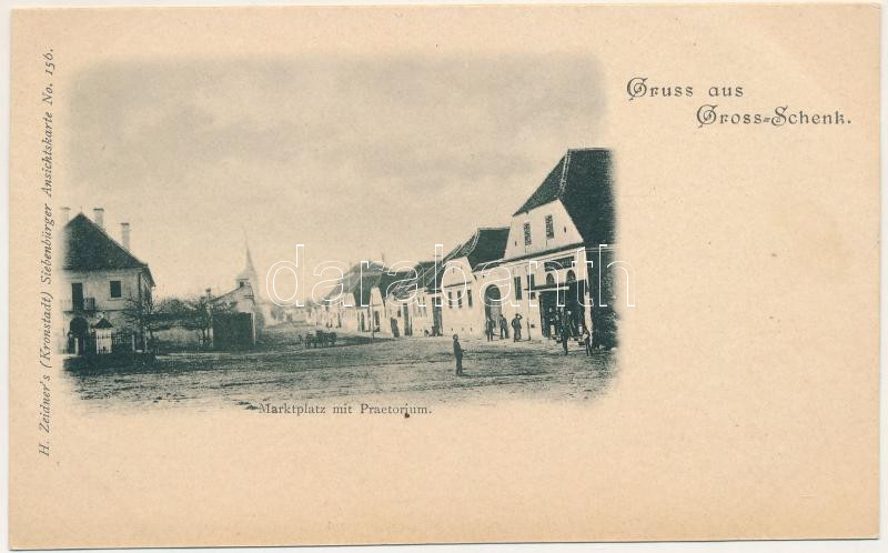 Nagysink, Gross-Schenk, Cincul Mare, Cincu; Marktplatz mit Praetorium. H. Zeidner's No. 156. / Piac tér, Josef Hammer üzlete / market square, shop