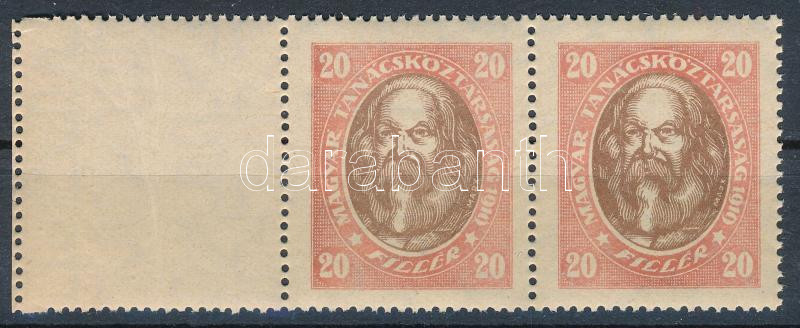 1919 Magyar Tanácsköztársasági arcképek 20f pár bal oldali üres mezővel, álló vízjellel (56.000)