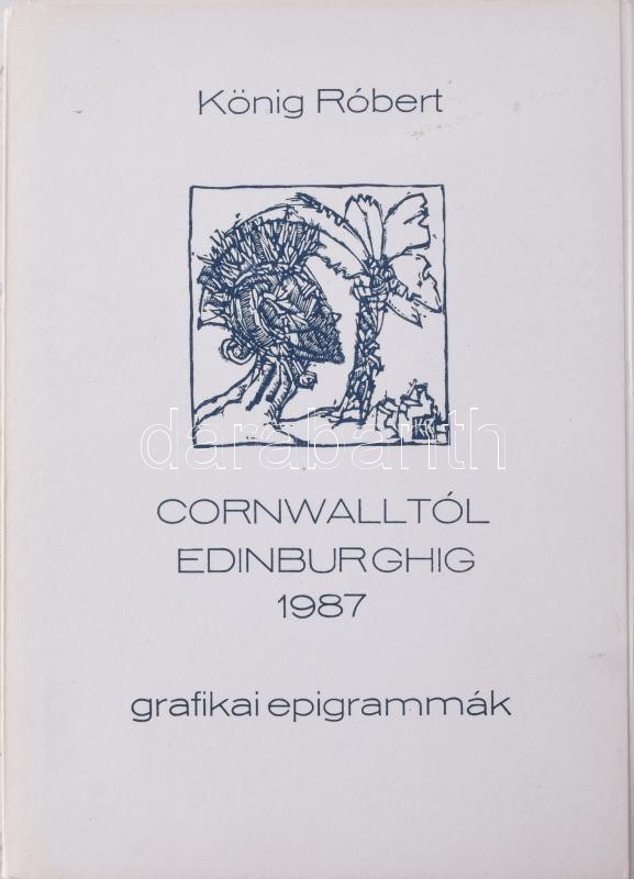 König Róbert (1951-2014): Cornwalltól Edinburgh-ig 1987. Grafikai epigrammák. Bp., 1987., Kisgrafika Barátok Köre, 20 t. Fametszet, papír, mindegyik ceruzával jelzett. Számozott, 10. számú példány. Kiadói papírmappán apró kopásnyomokkal, máskülönben jó állapotban. Komplett, hiánytalan!
