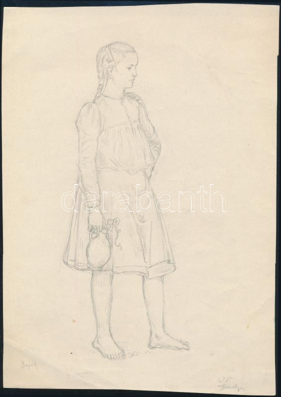 Glatz jelzéssel (Glatz Oszkár vagy fia, Henrik?): Bujáki lány, 1938. Ceruza, papír. 24,5×17 cm.