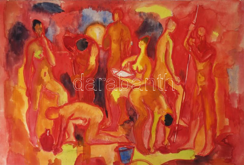 Jelzés nélkül: Női és férfi aktok. Akvarell, papír, 40×59 cm