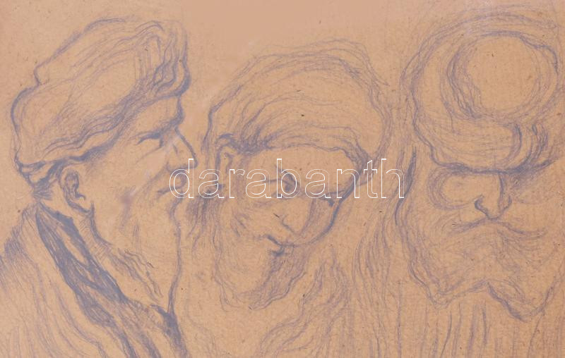 Munkácsy jelzéssel: Alakok. Ceruza, papír. Üvegezett, kissé sérült fakeretben, 32×23,5 cm.