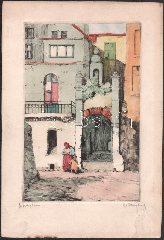 Csillag József (1894-1977): Bordighera. Színezett rézkarc, papír, jelz...