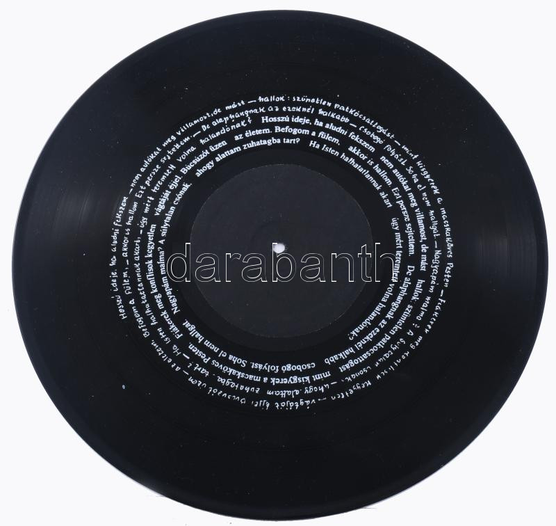 Hegedűs 2 László (1950-): Faludy György. Művészlemez (bakelit), nyomtatott szöveg. Jelzett Hegedűs 2 László által, számozott: 47/100. Faludy György nyomtatott aláírásával és művének szövegrészleteivel. d: 30 cm.
