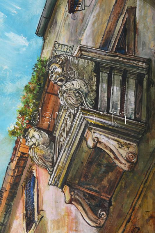 Jálics Gyula (1940-2016): Oroszlános erkély (Opatija, Horvátország). Olaj, farost, jelzett. Fakeretben, 68×50 cm.