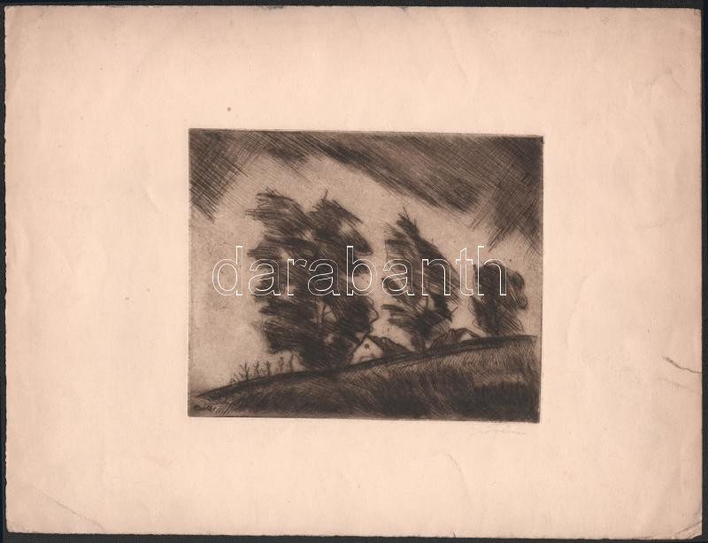 Zsótér Ákos (1895-1983): Táj. Rézkarc, papír, jelzett, lapszéli szakad...