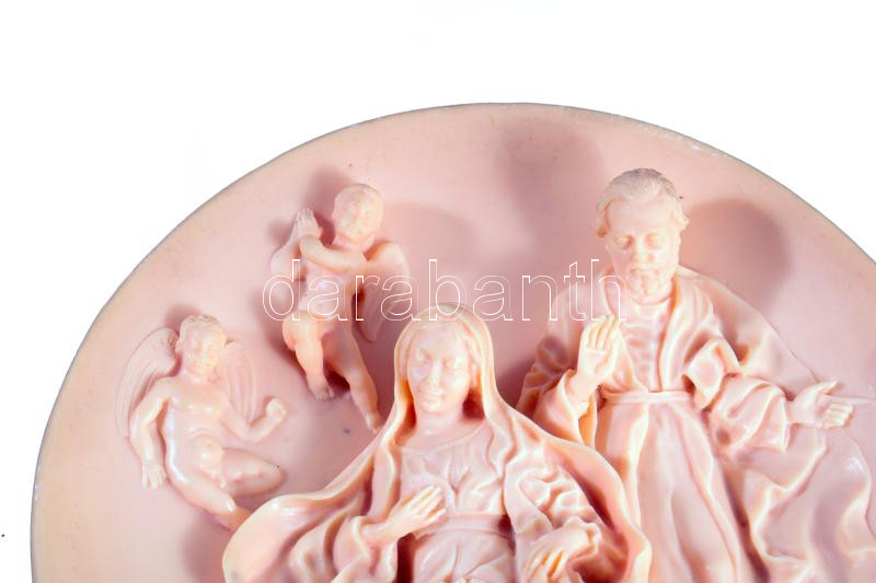 Olasz számozott kegytárgy falidísz, öntött alabástrompor, jelzett, hibátlan, d: 21,5 cm