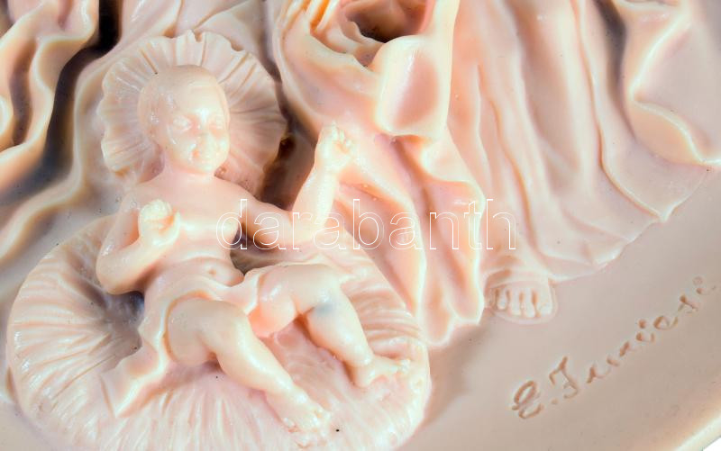 Olasz számozott kegytárgy falidísz, öntött alabástrompor, jelzett, hib...