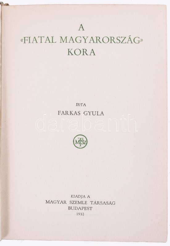Farkas Gyula: A "fiatal Magyarország" kora. A Magyar Szemle Könyvei V.... https://www.darabanth.com/en/518-Auction-philately-postcards-numismatics-artwork-books-collectibles-jewelry/524.0/Books/Books-History~120/Farkas-Gyula-A-fiatal-Magyarorszag-kora-A-Magyar-Szemle-Konyvei-V-Bp-1932-Magyar-Szemle~II3503067