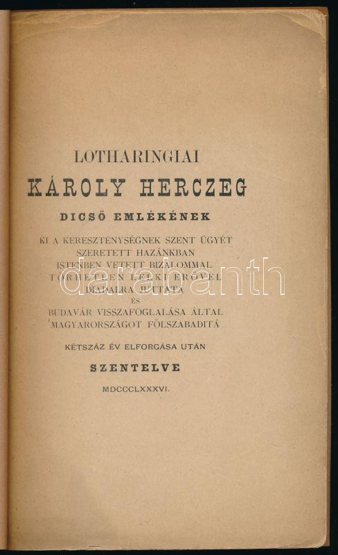 Gyurits Antal: Budavár visszafoglalása 1686. Olasz nyelven irt eredeti kutfő után közli - - . Szatmártt, 1886, Molnár János-ny., XVI+103 p. Papírkötésben, pótolt borítóval, helyenként sérült lapszélekkel.