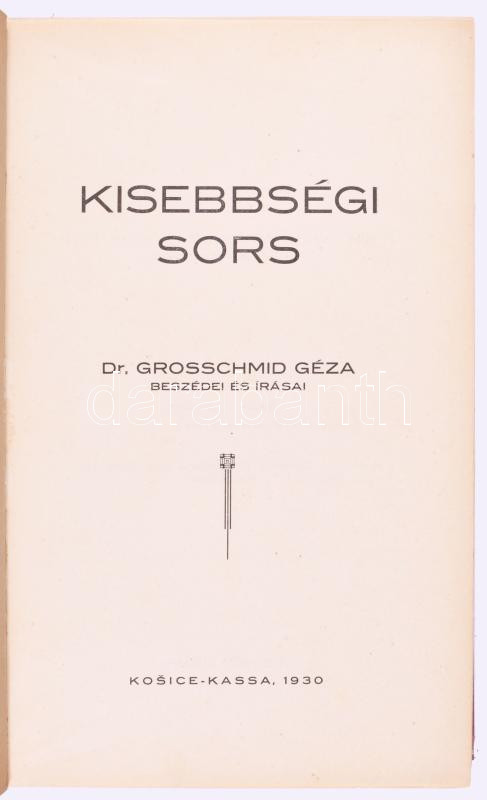 https://www.darabanth.com/en/518-Auction-philately-postcards-numismatics-artwork-books-collectibles-jewelry/524.0/Books/Books-History~120/Kisebbsegi-sors-Dr-Grosschmid-Geza-beszedei-es-irasai-Kassa-1930-Szerzo-Kiadoi-egeszvaszon~II3520781