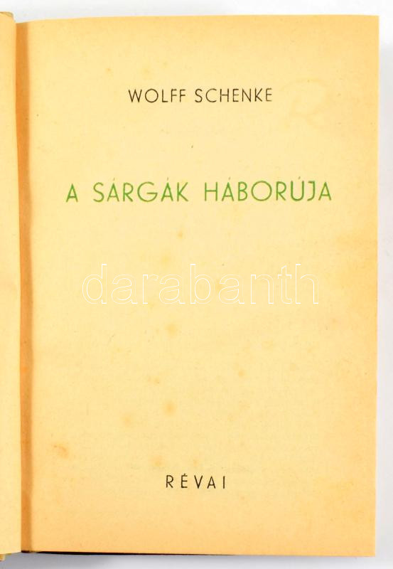 Schenke, Wolff: A sárgák háborúja. Bp., 1942, Révai. Kiadói félvászon kötés, pótolt fénymásolt papírborítóval, jó állapotban.