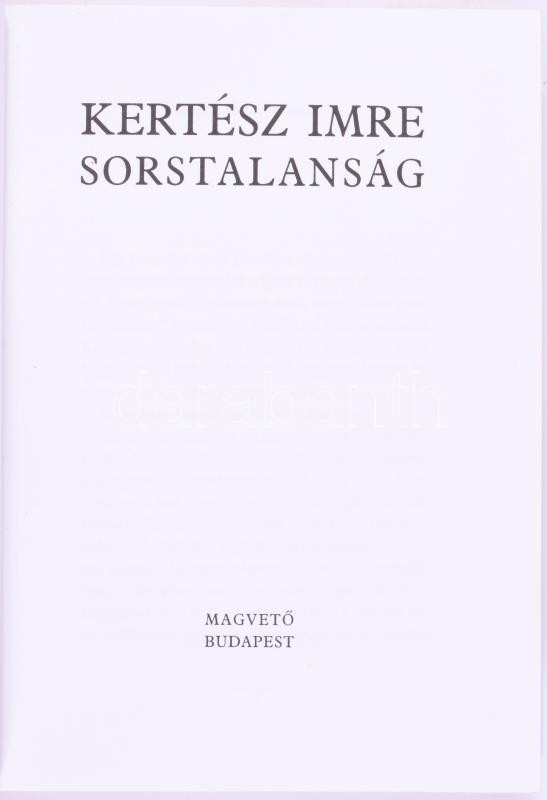 https://www.darabanth.com/en/518-Auction-philately-postcards-numismatics-artwork-books-collectibles-jewelry/524.0/Books/Books-Other-rarities~136/Kertesz-Imre-Sorstalansag-Bp-2005-Magveto-333plus3-p-Kiadoi-egeszvaszon-kotes-kiadoi~II3520733