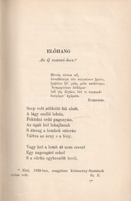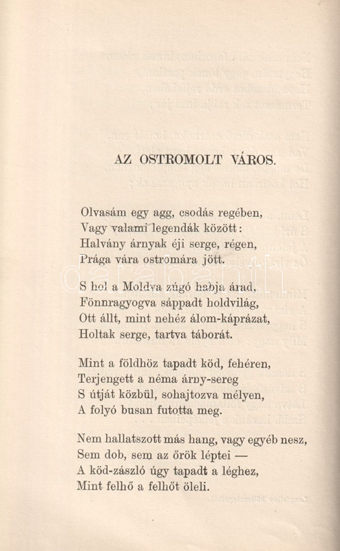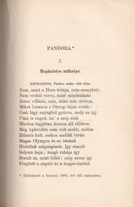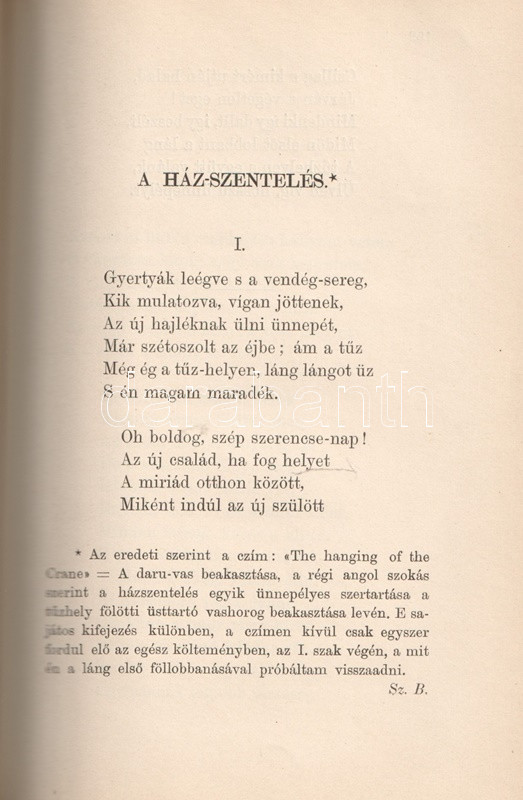 Aranyozott, festett, vaknyomásos kiadói egészvászon kötésben (Gottermayer Nándor, Budapest), márványmintás festésű lapszélekkel. Jó példány.