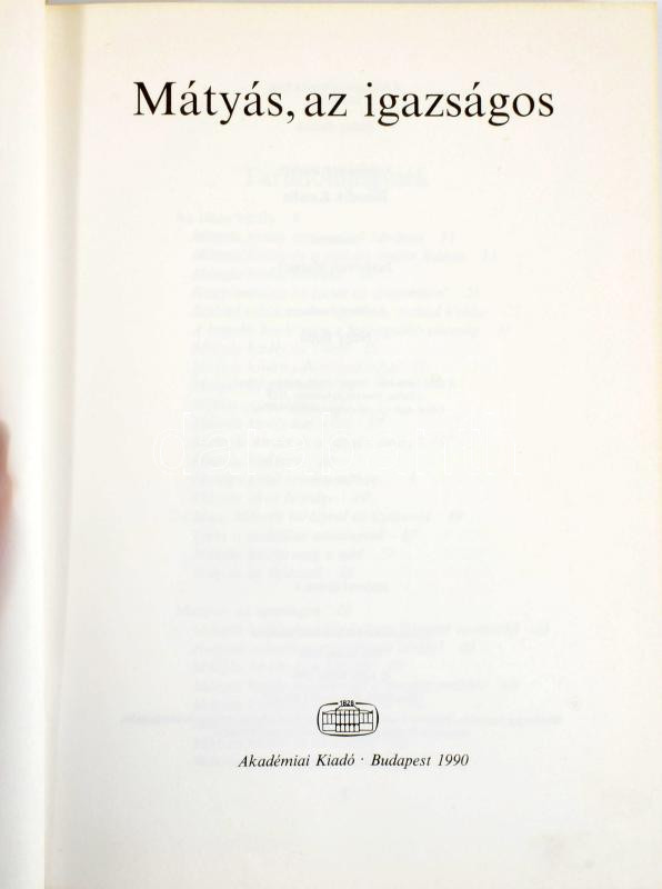 Mátyás, az igazságos. Vál. és az utószót Ãrta KrÃza Ildikó. Jankovich ...