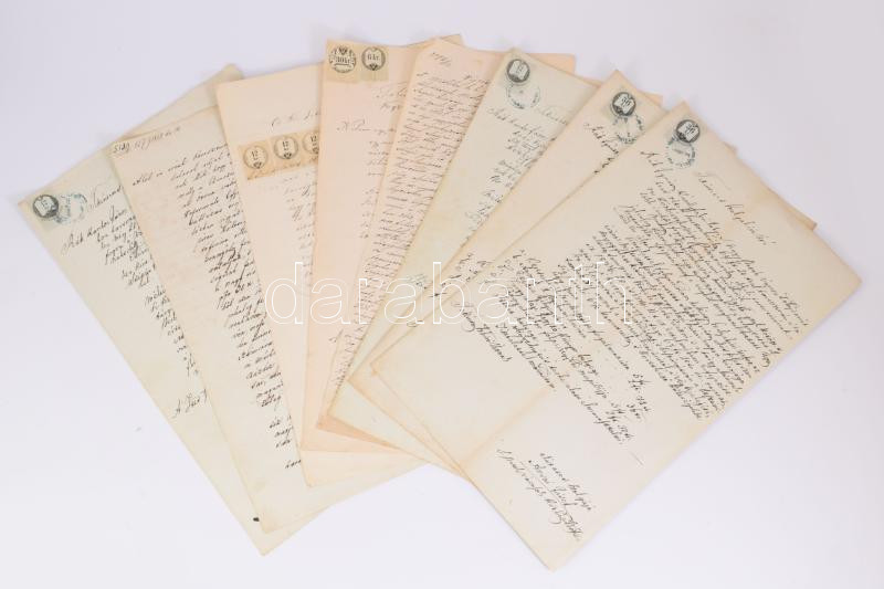 ca 1860 8 db okmánybélyeges teljes okmány, Sárospatak