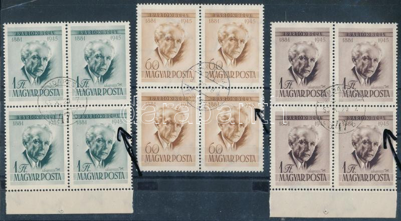 1955 Bartók Béla (I.) sor négyestömbben, mindegyik értéken az ismert l...