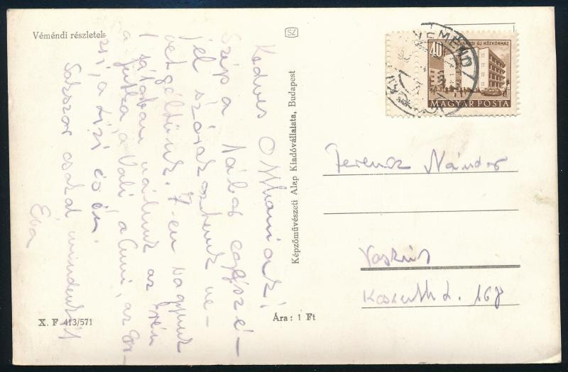 https://www.darabanth.com/en/518-Auction-philately-postcards-numismatics-artwork-books-collectibles-jewelry/524.0/Hungarian-philately-and-postal-history/Issues-between-1957-1969~51/1957-Epuletek-40f-bal-oldali-kettos-fogazassal-es-pici-ures-mezovel-kepeslapon-VEMEND-Vaskut~II3520814