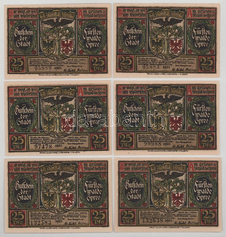 Német Birodalom / Weimari Köztársaság / Fürstenwalde 1921. 25pf (6db, 3xklf) T:AU-XF