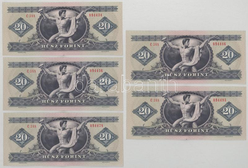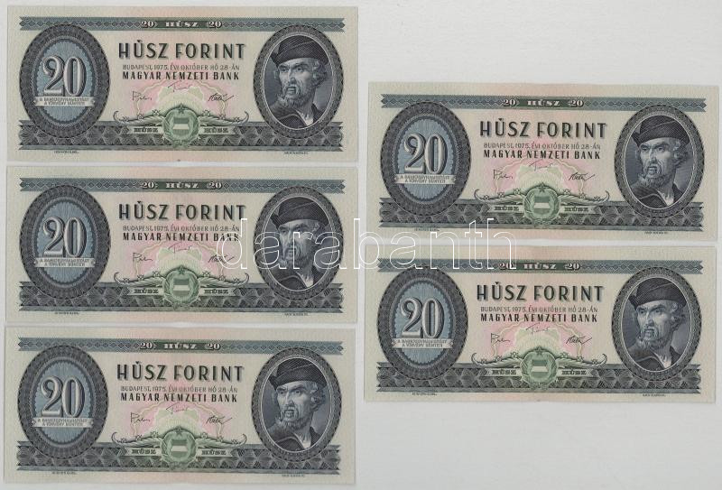 1975. 20Ft (5x) közeli sorszámok "C 388 094434 - C 388 094493" T:XF