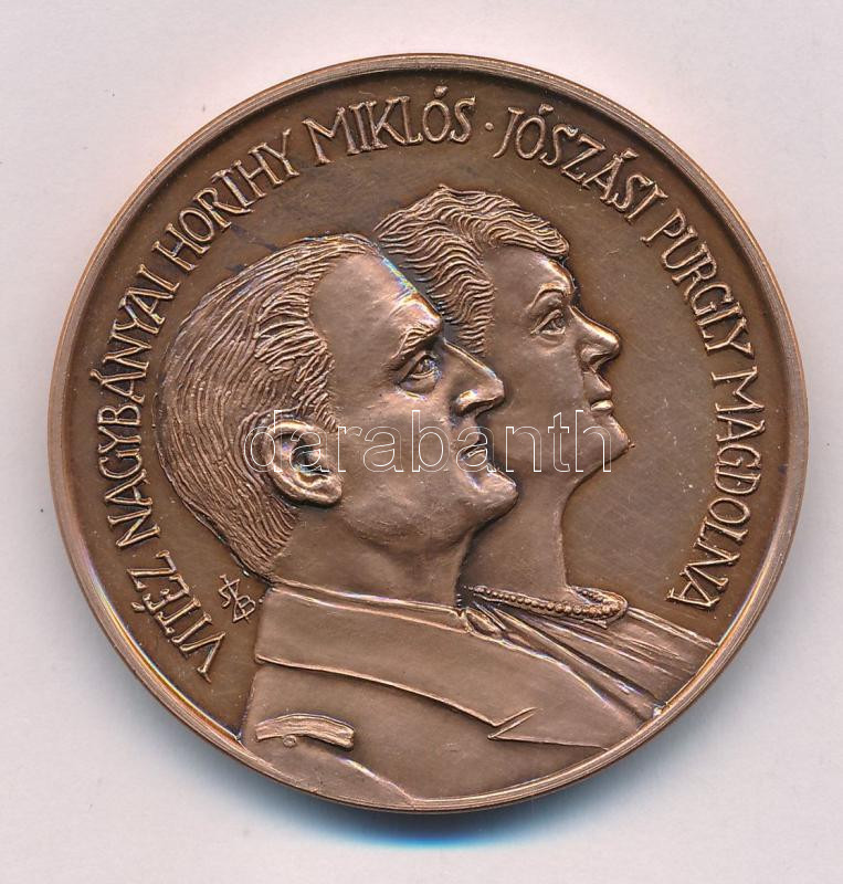 Szabó Imrefia Béla (1952- ) 1993. "Vitéz Nagybányai Horthy Miklós - Jószási Purgly Magdolna / Hazatértek! - Kenderes MCMXCIII IX IV" bronz emlékérem kapszulában (42,5mm) T:UNC patina