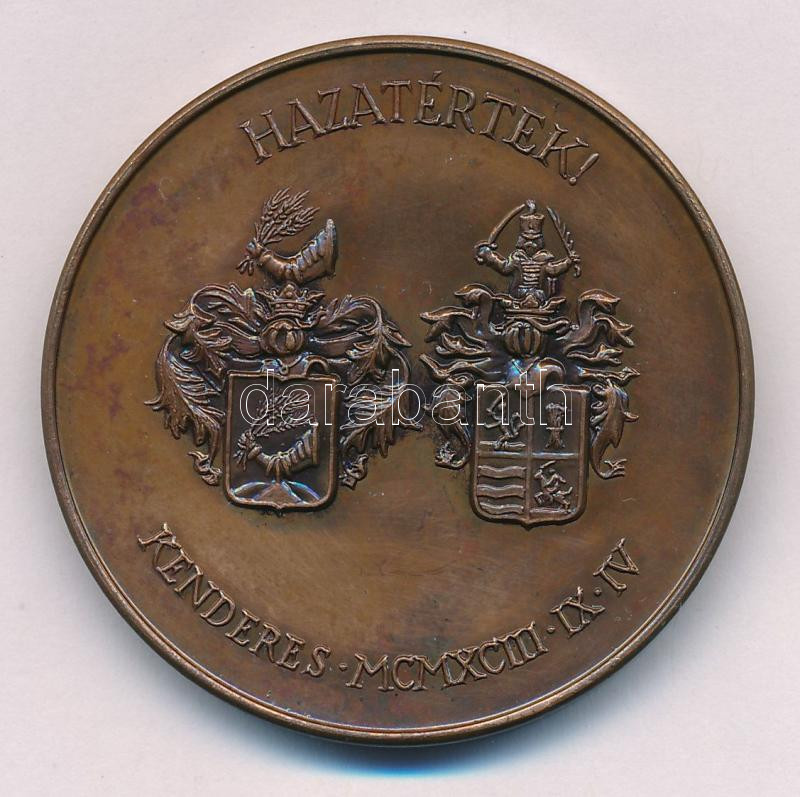 Szabó Imrefia Béla (1952- ) 1993. "Vitéz Nagybányai Horthy Miklós - Jószási Purgly Magdolna / Hazatértek! - Kenderes MCMXCIII IX IV" bronz emlékérem kapszulában (42,5mm) T:UNC patina