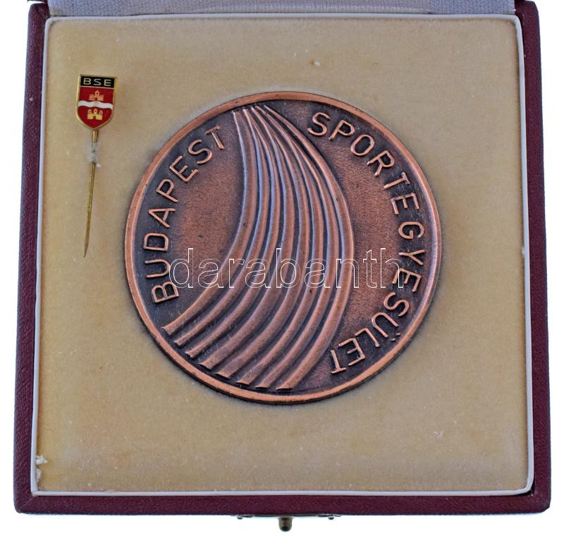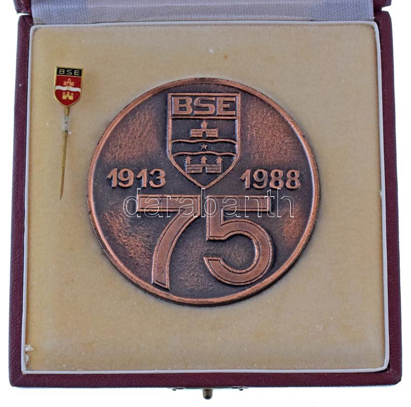 1988. "BSE 75 - 1913-1988 / Budapesti Sportegyesület" bronz emlékérem eredeti tokban BSE jelvénnyel (70mm) T:AU