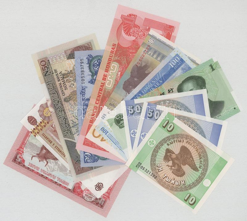 Vegyes, 11db-os bankjegytétel, benne: Kirgizisztán, Kína, Madagaszkár, Szerbia, Honduras, Bhután, Szomália, Moldova, Nepál T:UNC-AU