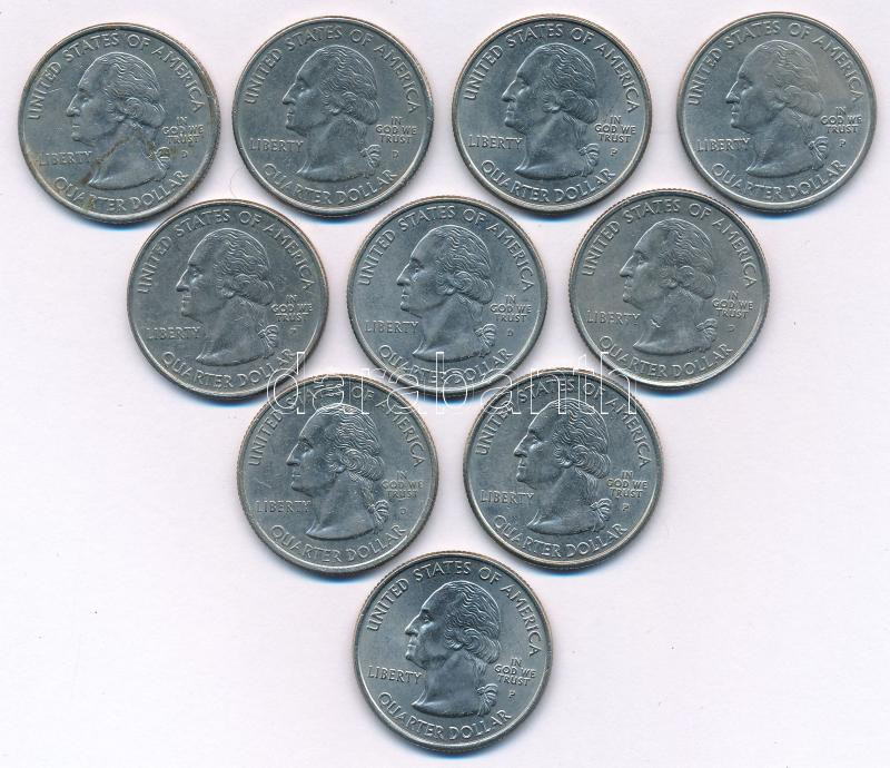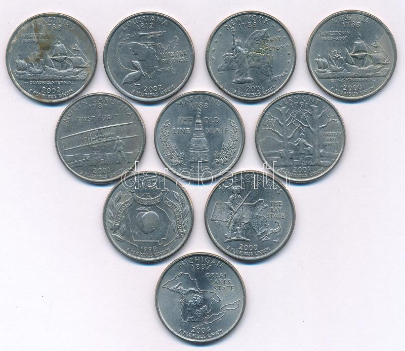 Amerikai Egyesült Államok 1999-2004. 1/4$ Cu-Ni "50 állam" (10xklf) T:XF egyiken durva ph-k