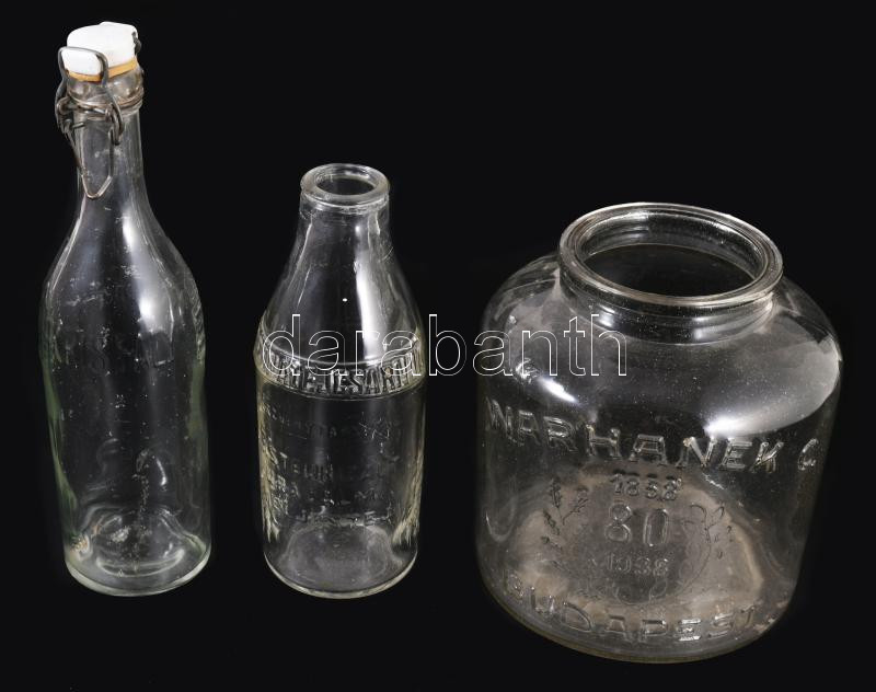 3 darab régi üveg: Warhanek C. Budapest szardíniás üveg, Kristály csat...