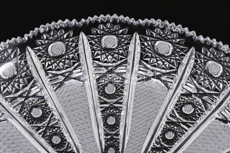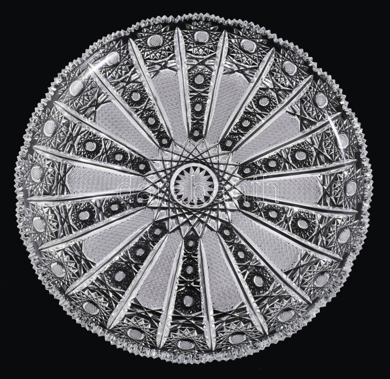 Gazdagon csiszolt ólomkristály kínáló, jelzés nélkül, hibátlan, d: 29,5 cm
