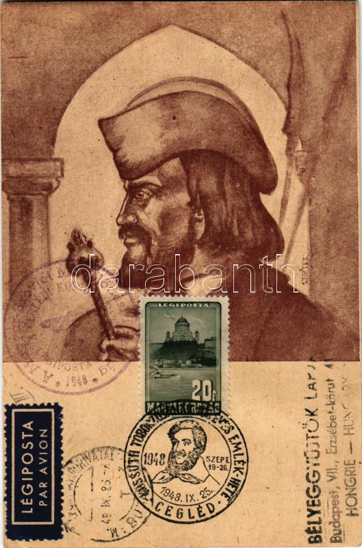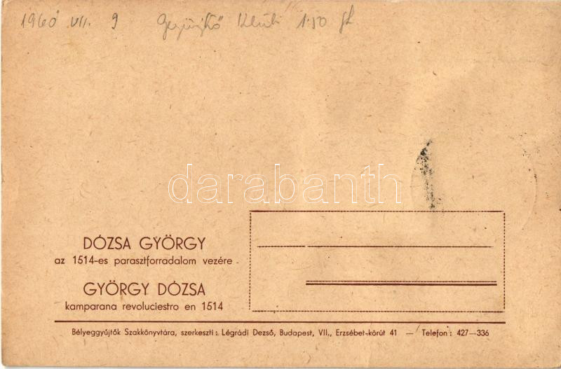1948 Dózsa György az 1514-es parasztforradalom vezére. Bélyeggyűjtők Szakkönyvtára. TCV card s: Szirtes + So. Stpl. (apró lyukak / tiny pinoles)