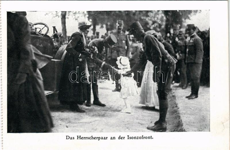Das Herrscherpaar an der Isonzofront / Az uralkodópár (IV. Károly és Zita) az Isonzófronton, képeslapfüzetből / WWI Austro-Hungarian K.u.K. military, Charles I of Austria and Zita of Bourbon-Parma visiting the troops of Isonzo front, from a postcard booklet