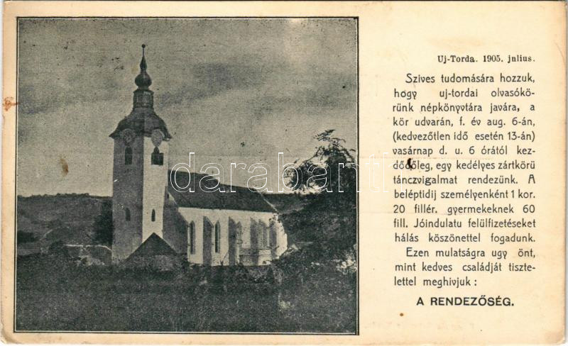 1905 Torda, Turda; Újtordai református templom. Füssy és Sztupjár kiadása / Calvinist church (fl)
