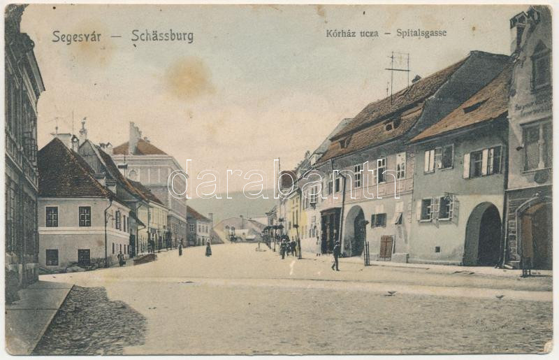 1908 Segesvár, Schässburg, Sighisoara; Kórház utca. Nagy kiadása / Spitalgasse / Hospital Street (Rb)