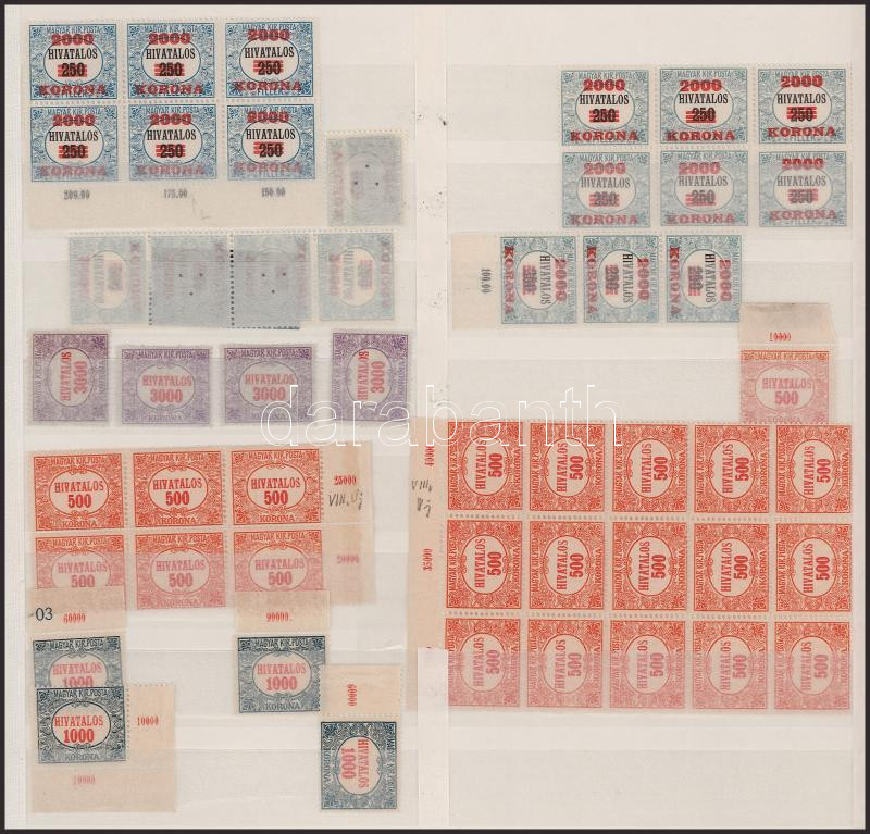 1921-1924 151 db Hivatalos bélyeg, közte 9 db 3-as lyukasztással, sok összefüggéssel kétoldalas nagyalakú berakólapon (111.700)