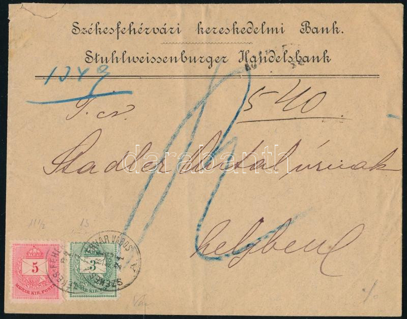 1881 5kr 11 1/2 fogazás + 3kr 13 fogazással helyi ajánlott levélen "SZÉKES-FEHÉRVÁR VÁROS"