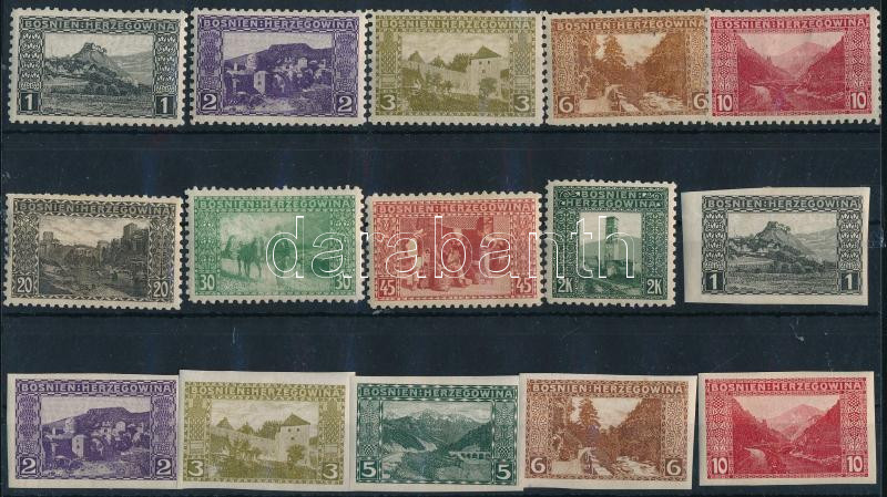 1906 9 db bélyeg 9 1/4 fogazással + 6 db vágott bélyeg (**70.200 - a vágott arányosan számolva)