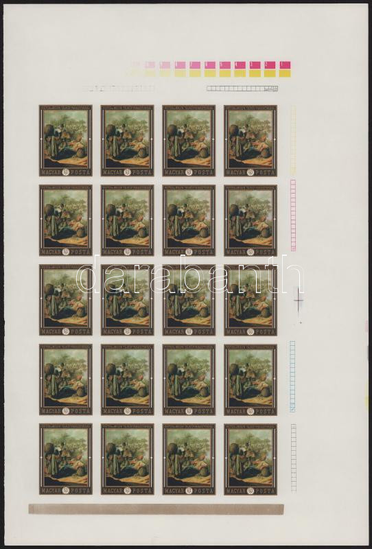 1969 Festmények (VII.) 60f vágott 20-as nyomdai ívben, nyomdai jelzésekkel, gumi nélküli papíron