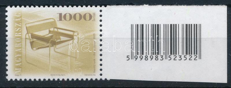 2006 Antik bútorok (IX.) 1000Ft 12:11 1/2 fogazással ívszéli vonalkóddal Securtrack post papíron RR! (52.000)