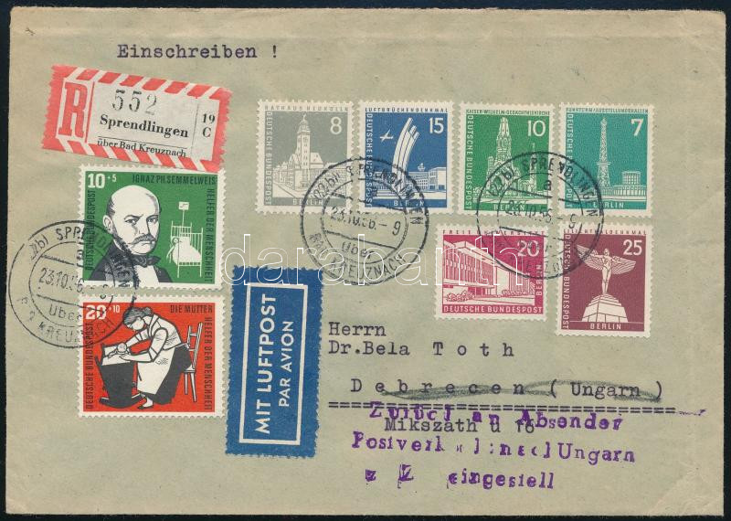 1956. 10. 26 Ajánlott légi levél Magyarországra, a postaforgalom leállítása miatt visszairányítva
