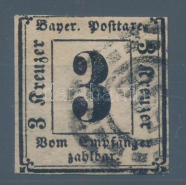 Német államok - Bajorország 1962 Mi 1 portó felül szűkre vágva, ritka darab! (Mi EUR 400.-)