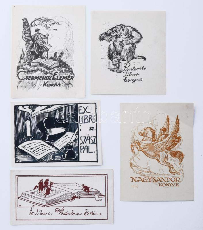 Haranghy Jenő (1894-1951): 5 db ex libris. Klisé, papír, jelzett a klisén, klf. méretekben