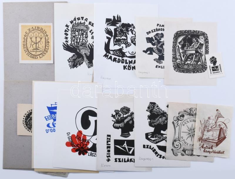 Klf. alkotók (Kopasz Márta, Kner Albert, Fery Antal stb.): 18 db ex libris és kisgrafika. Klf. technikák, papír, többségében jelzett a nyomaton. Klf. méretekben.